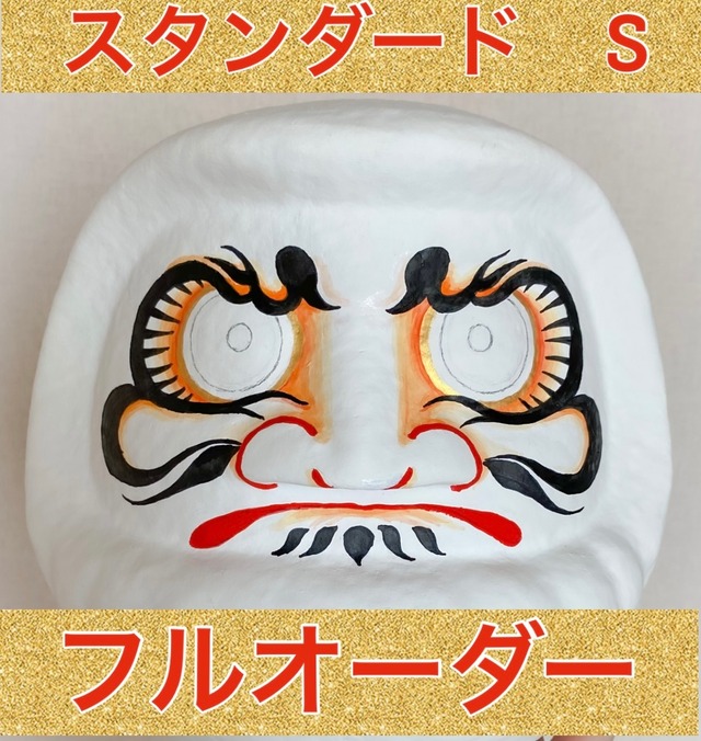 スタンダードのSサイズ(9㎝) スタンダードは達磨全体をお好きなカラー、一色で塗った上にワンポイントの柄をお描きします。 画像をご参照下さい。 数珠の有無はお選びいただけます。 文字入れは無料です。 黒目は、アウトラインだけ鉛筆で書いておくことも可能ですし、最初からお入れすることも出来ます。 まずはお気軽にお問合せ下さい。 入れ墨、刺青、タトゥー風の達磨さん、お花や着物の柄のような美しい達磨さん、北欧風柄やもちろんスタンダードなだるまさんなど、どんな図柄にも対応いたします。 過去に手がけた作品はInstagramに載せていますのでご参照下さい。 オーダー後は画像で都度作品の進み具合をお伝えいたします。 世界で一つだけの達磨が仕上がるまでの工程もお楽しみいたたげたらなと思います。
