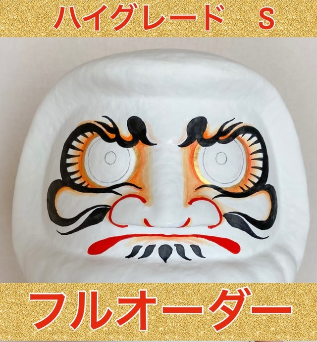 ハイグレードの Sサイズ(9㎝) ハイグレードは達磨全体をお好きなカラー、一色で塗った上にワンポイントの柄と全体にラインで簡単な模様をお描きします。 画像をご参照下さい。(画像はプレミアムのものですが雰囲気だけお伝えしたくて載せています。ハイグレードは図柄は一つのみとなります) 数珠の有無はお選びいただけます。 文字入れは無料です。 黒目は、アウトラインだけ鉛筆で書いておくことも可能ですし、最初からお入れすることも出来ます。 まずはお気軽にお問合せ下さい。 入れ墨、刺青、タトゥー風の達磨さん、お花や着物の柄のような美しい達磨さん、北欧風柄やもちろんスタンダードなだるまさんなど、どんな図柄にも対応いたします。 過去に手がけた作品はInstagramに載せていますのでご参照下さいませ。 オーダー後は画像で都度作品の進み具合をお伝えいたします。 世界で一つだけの達磨が仕上がるまでの工程もお楽しみいたたげたらなと思います。