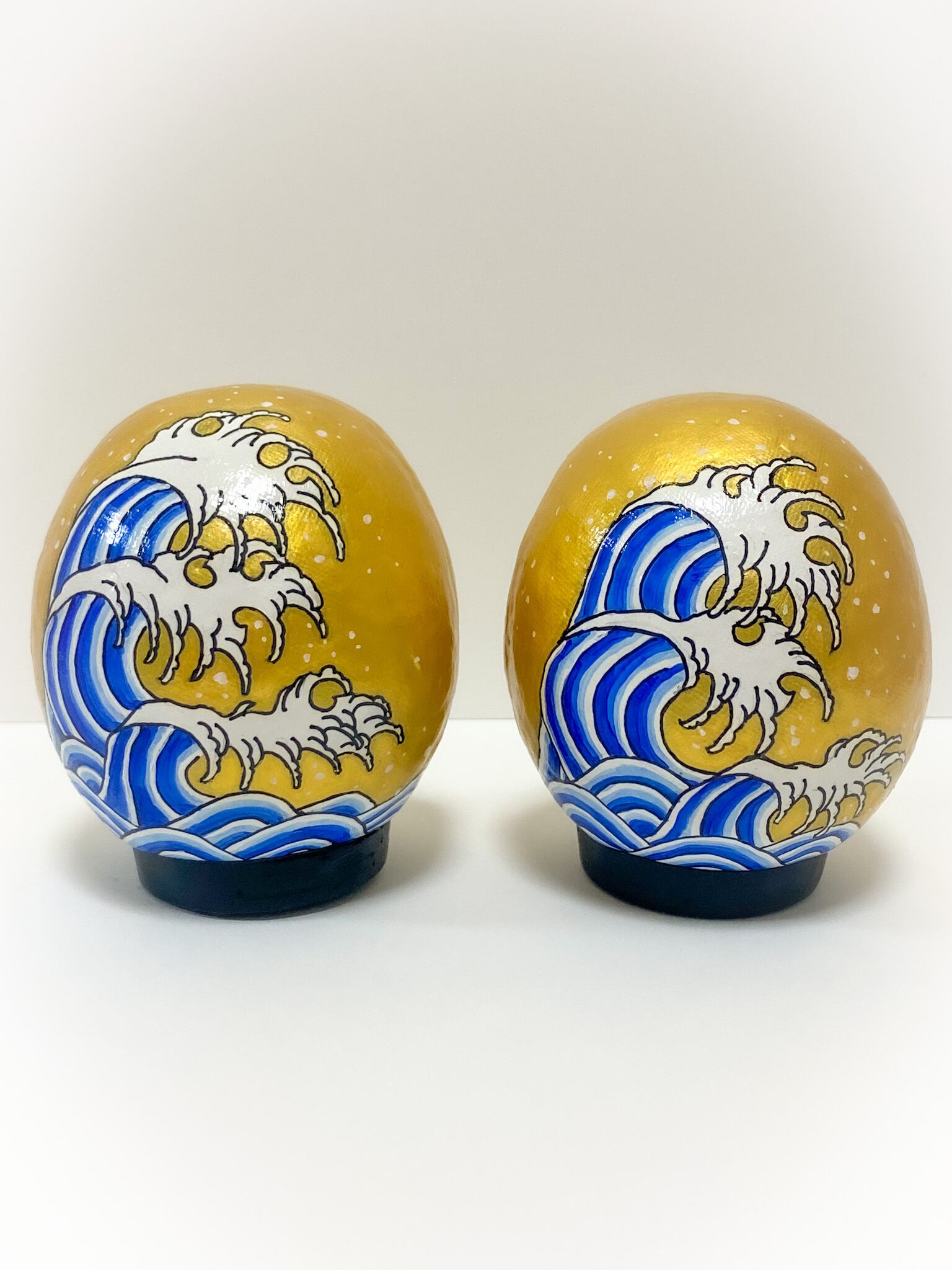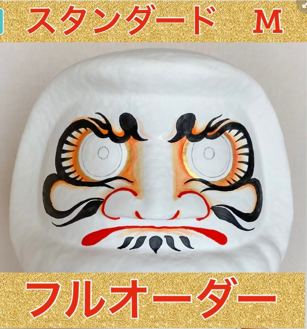 スタンダードは達磨全体をお好きなカラー、一色で塗った上にワンポイントの柄をお描きします。