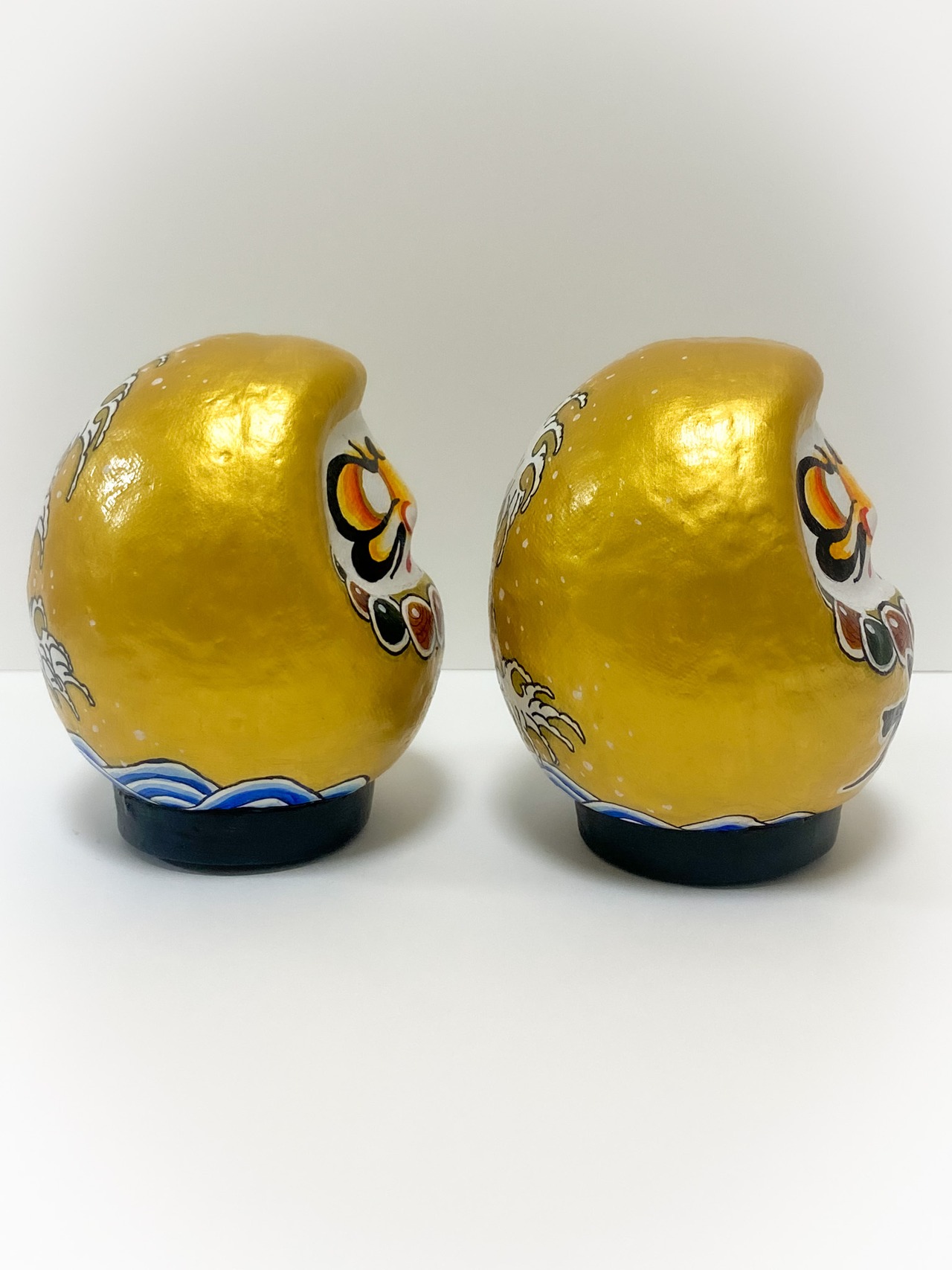 スタンダードは達磨全体をお好きなカラー、一色で塗った上にワンポイントの柄をお描きします。