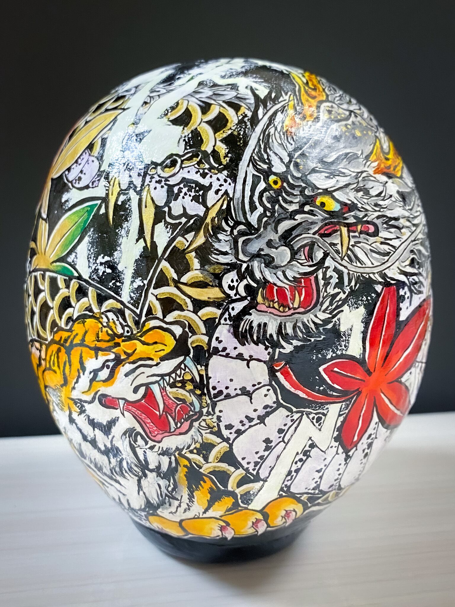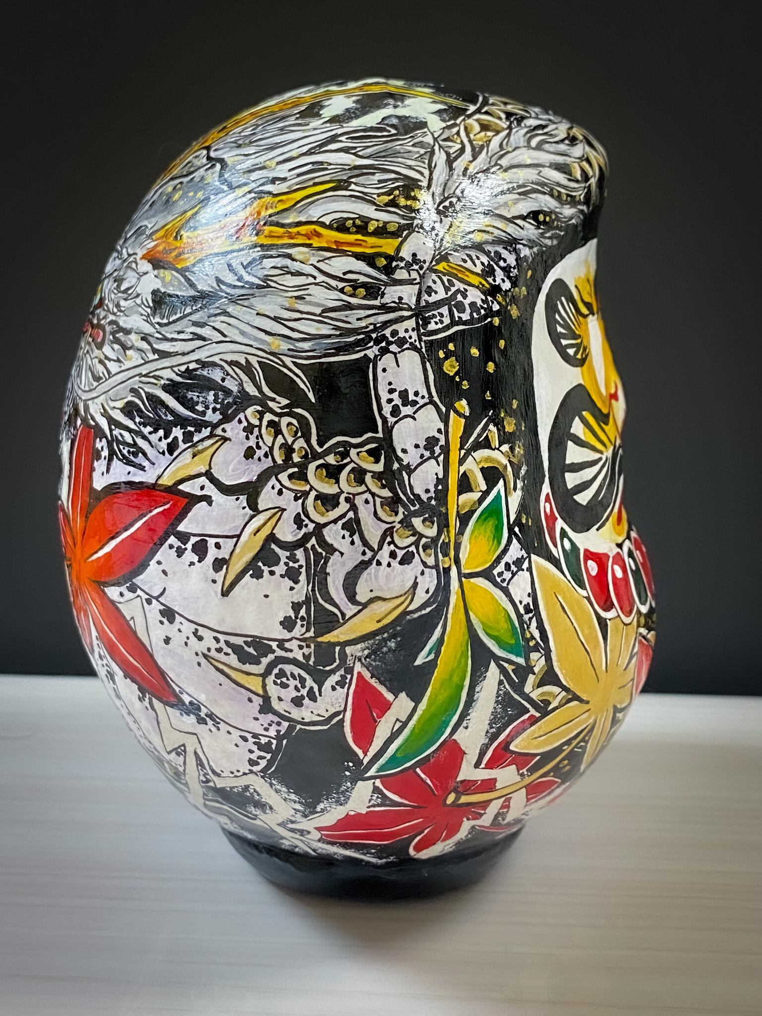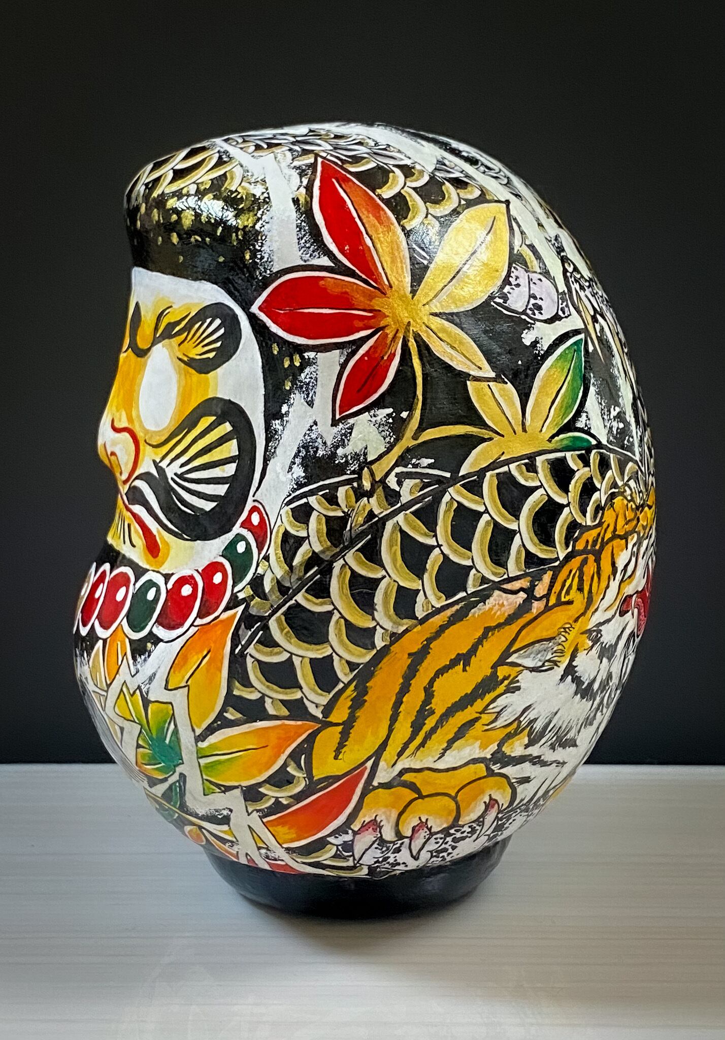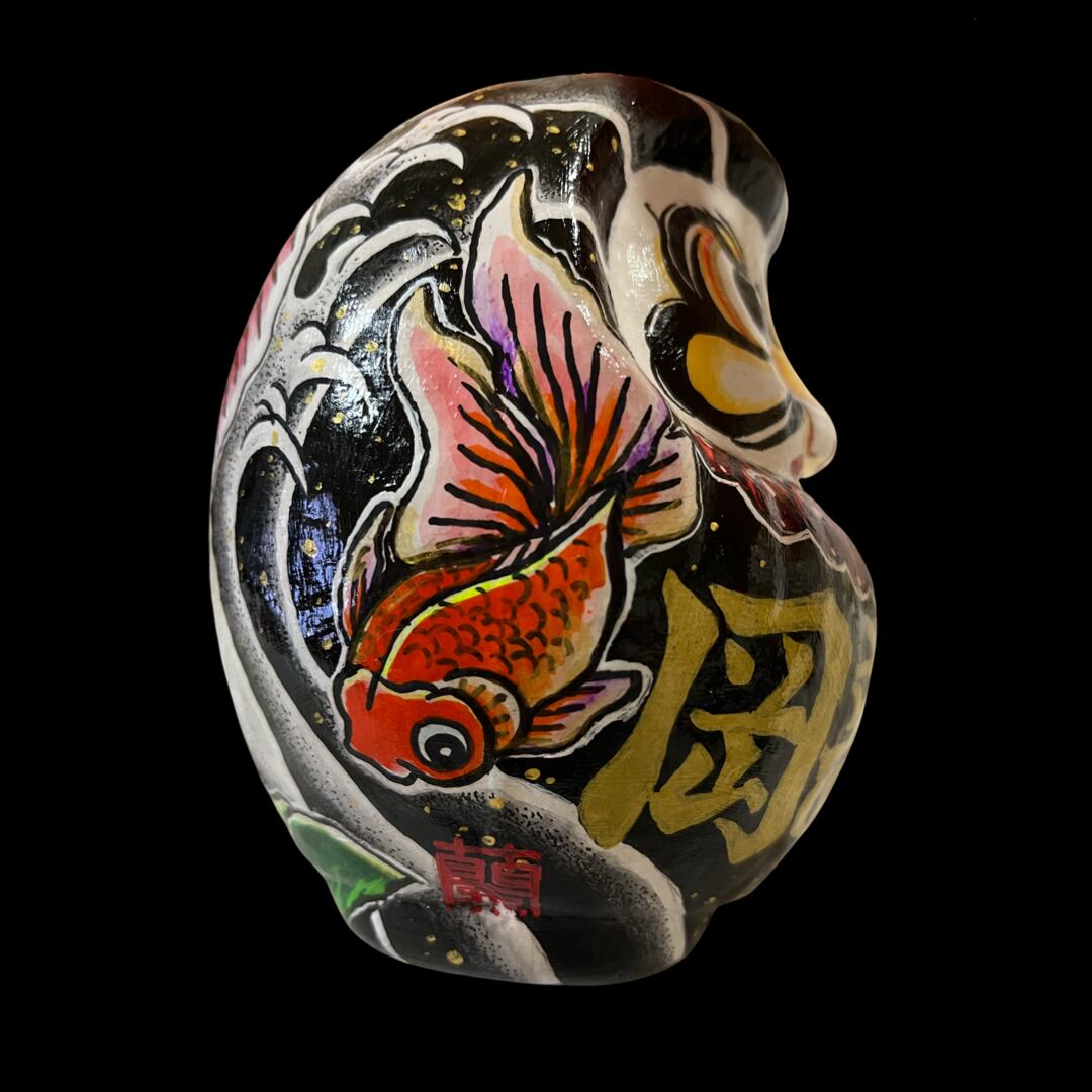 入れ墨、刺青、タトゥー風の達磨さん、お花や着物の柄のような美しい達磨さん、北欧風柄やもちろんスタンダードなだるまさんなど、どんな図柄にも対応いたします。