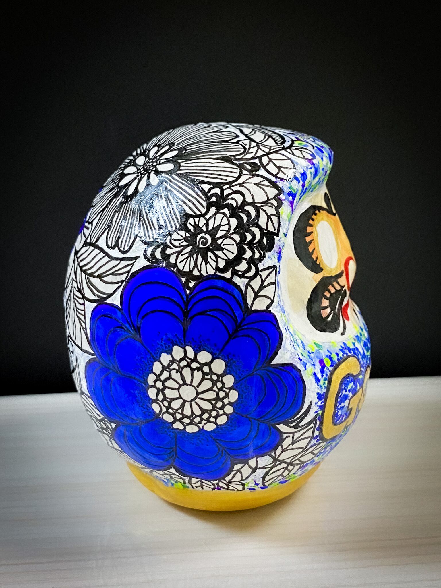プレミアムは達磨全体をお好きなカラーで塗った上に全体にお好きな模様をお描きします。
