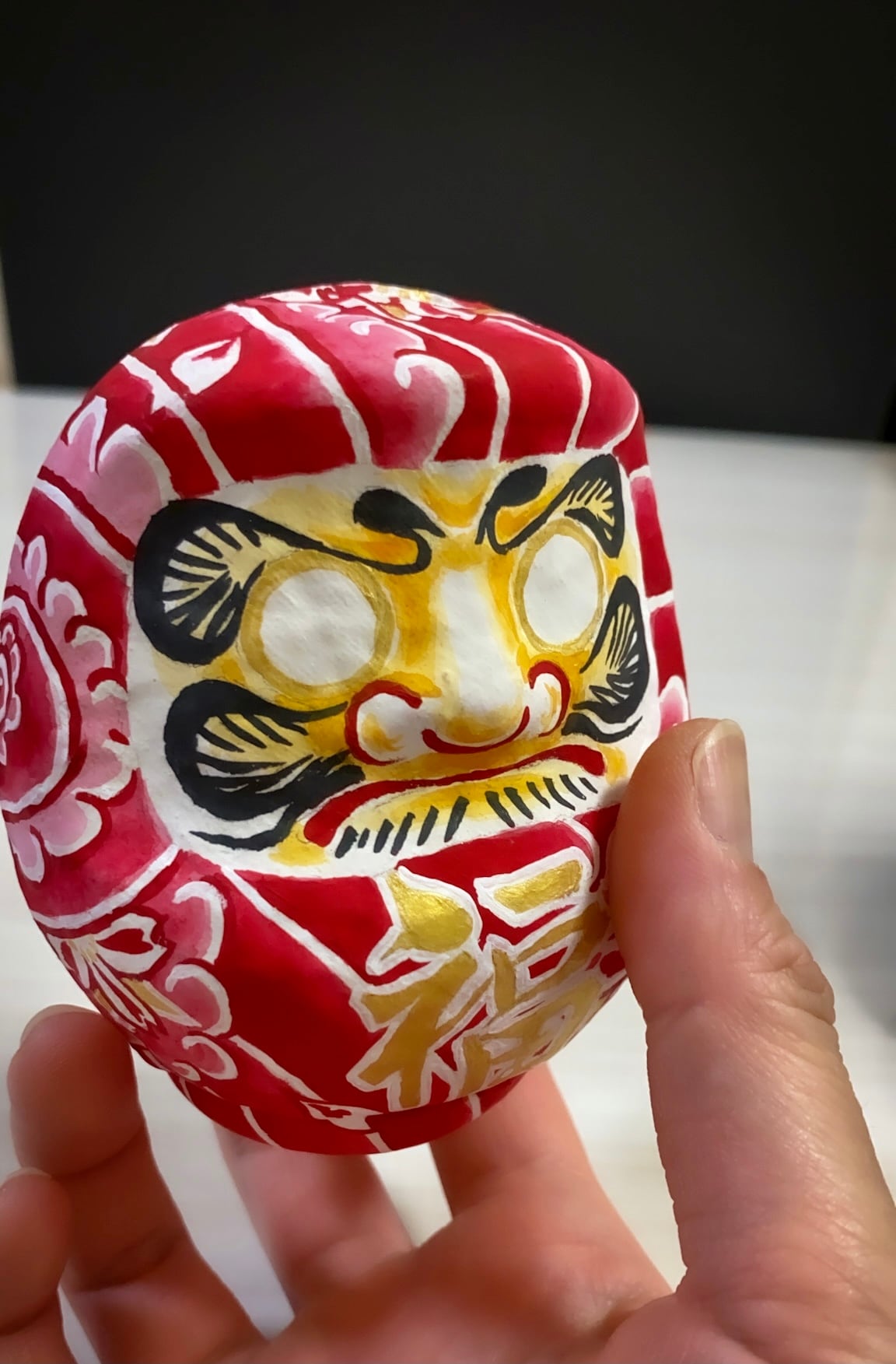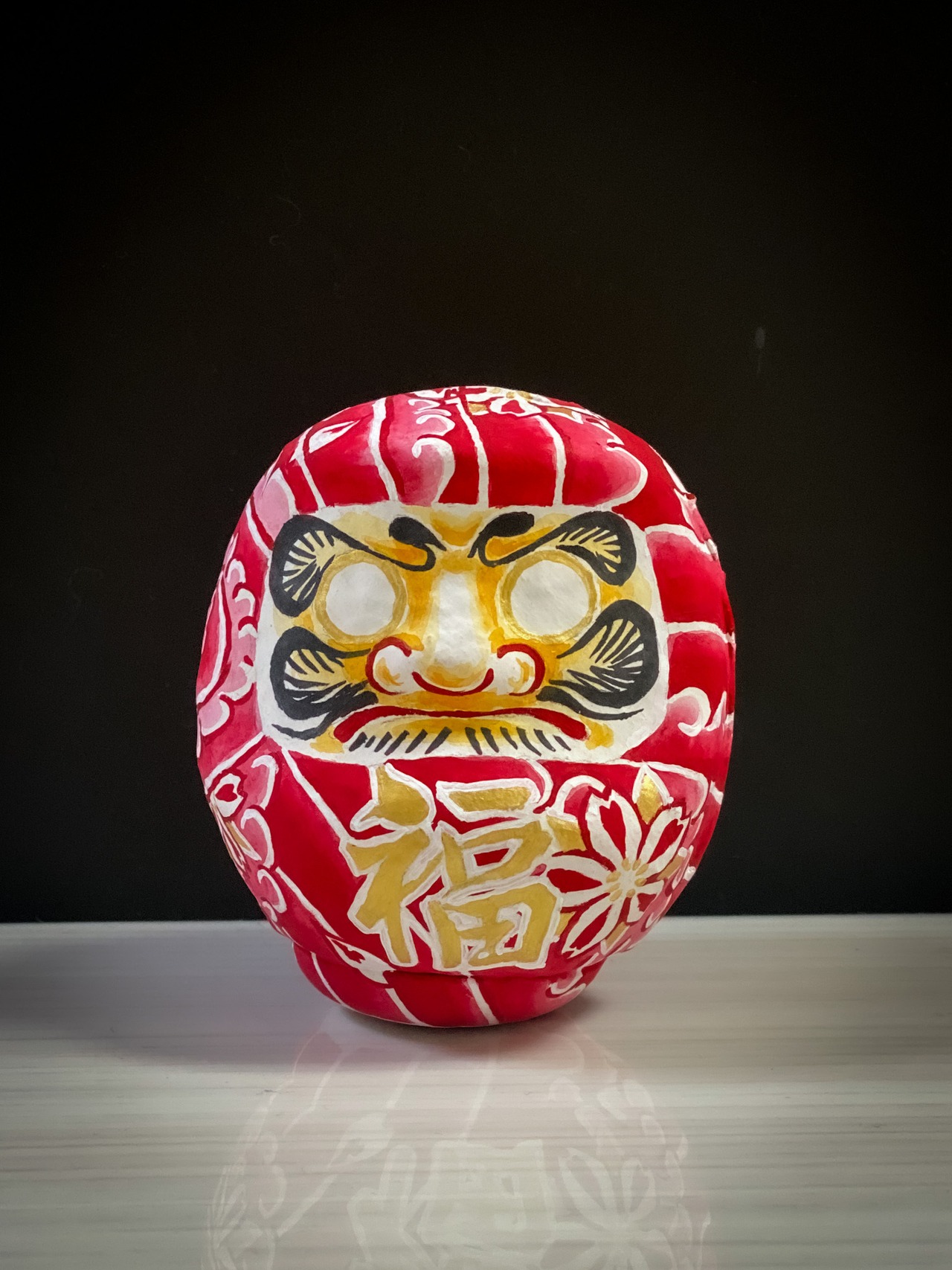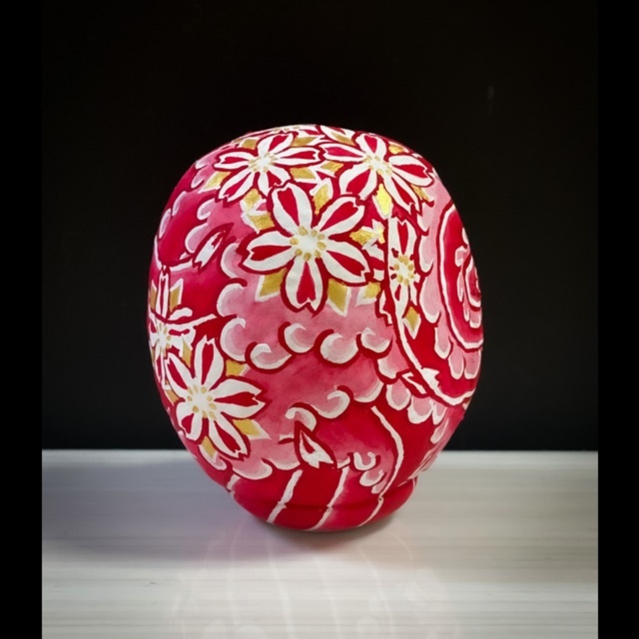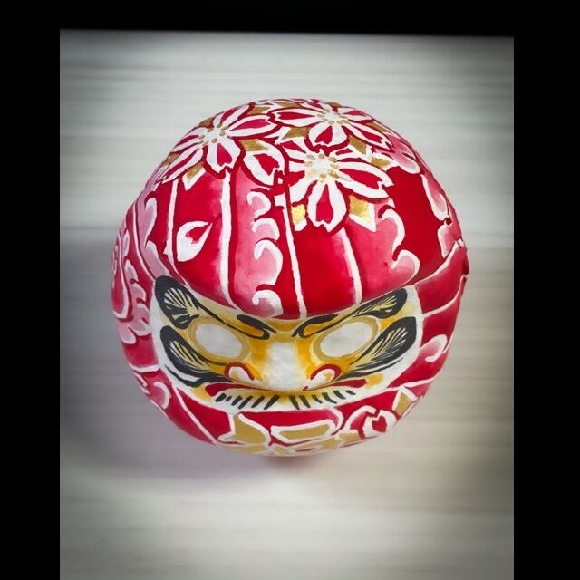 入れ墨、刺青風に桜散らしを描いた達磨です。